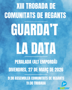 Moltes gràcies per registrar la teva inscripció a la XII Trobada de Comunitats de Regants de l’ACATCOR!